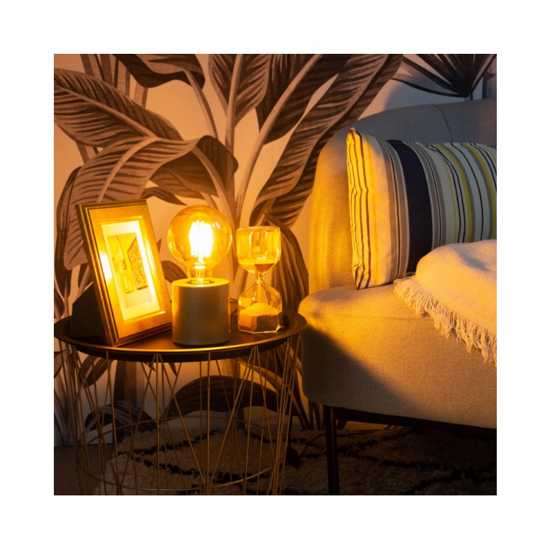 Son verre ambré diffuse la lumière sur un angle supérieur à 240°, assurant une excellente répartition dans la pièce. Grâce à son culot E27 standard, elle s’installe facilement sur la majorité des suspensions, lampadaires ou plafonniers. Avec ses dimensions généreuses de 95 mm de diamètre pour 140 mm de hauteur, elle devient un véritable objet déco visible même éteinte. Elle fonctionne sous 230V, dispose d’un IRC supérieur à 80 pour un bon rendu des couleurs et offre une durée de vie estimée à 15 000 heures. Modèle non compatible avec variateur. Garantie 5 ans.
