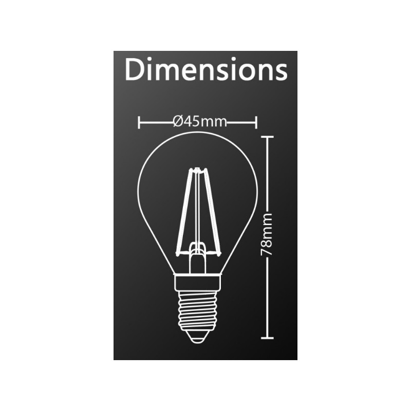 AMPOULE FILAMENT LED DECO SPHERIQUE P45 AMBRE 350 LUMENS 1800KELVIN 3,8W E14
