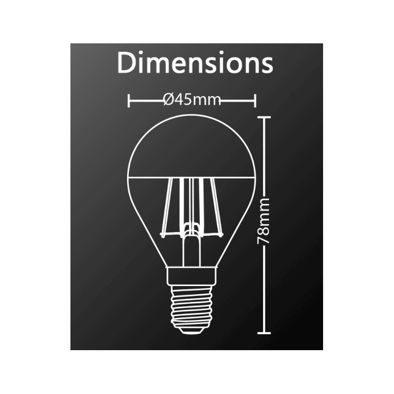AMPOULE FILAMENT LED DECO SPHERIQUE P45 SILVER TOP 350LUMENS 2600KELVIN 3,8W E14