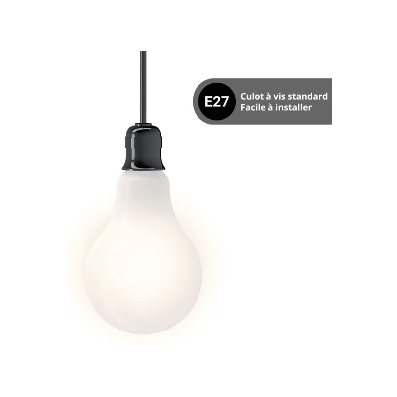 Équipée d’un culot E27 (gros culot à vis), elle s’installe facilement sur la majorité des luminaires : suspensions, lampes à poser ou plafonniers.