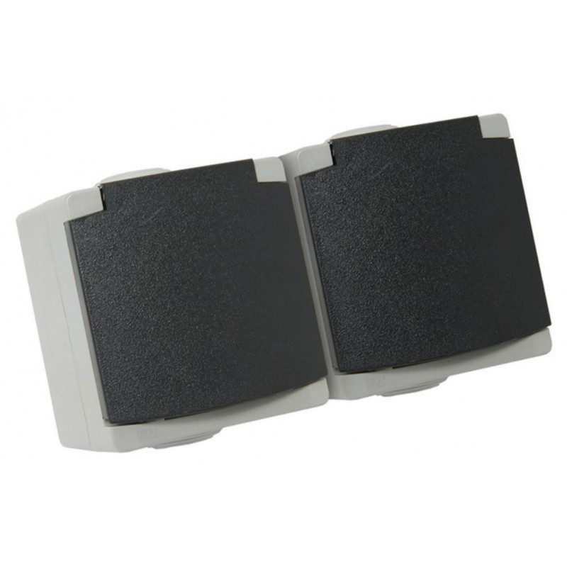 Prise double étanche IP65 idéal pour une utilisation en extérieur ou en milieu humide.