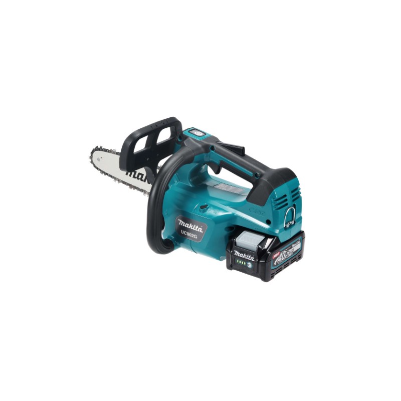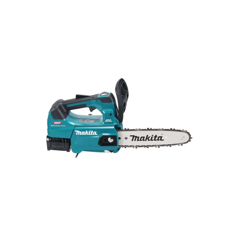 Tronçonneuse d’élagage Makita XGT UC002GM102 40V avec batterie 4Ah et chargeur inclus, guide 25 cm, légère, puissante et résistante à l’eau IPX4, idéale pour l’élagage professionnel.
